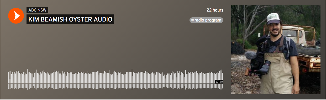 AN INTERVIEW WITH FILMMAKER KIM BEAMISH AND SOPHIE LONGDEN FROM ABC SOUTH EAST NSW ABOUT THE DOCUMENTARY, 'OYSTER', WHICH AIMS TO HIGHLIGHT THE VERY DIRECT EFFECTS OF CHANGE ON LOCAL ENVIRONMENTS ALONG OUR INLAND WATERWAYS AND ESTUARIES. A KICKSTARTER FUNDRAISING CAMPAIGN IS CURRENTLY UNDERWAY TO TAKE THE PRODUCTION OF OYSTER TO THE NEXT LEVEL. KIM BEAMISH SPOKE SOPHIE LONGDEN IN THE STUDIOS OF ABC SOUTH EAST ABOUT THIS INNOVATIVE MERGER BETWEEN ARTS, THE ENVIRONMENT AND THE LOCAL OYSTER INDUSTRY...